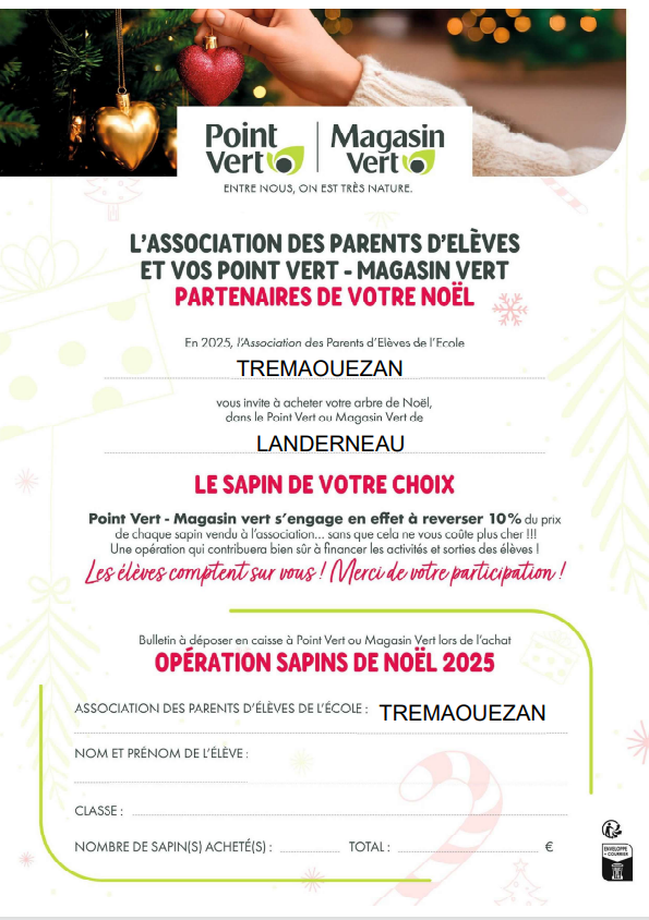 actualites Opérations de sapins de Noël par l’amicale laïque en partenariat avec point vert et magasin vert 6 décembre 2025 Télécharger ici le PDF Précédent Le programme Vac'Ados Vous aimerez aussi Ribin’AD Tranport à la demande 4 avril 2025 Communication du service d’eau potable 19 juin 2025 Textile dans les poubelles 6 septembre 2024