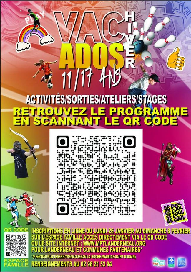 INSCRIPTIONS LANDERNEAU ET COMMUNES PARTENAIRES EN LIGNE : DU LUNDI 26 JANVIER AU DIMANCHE 8 FÉVRIER 2026.